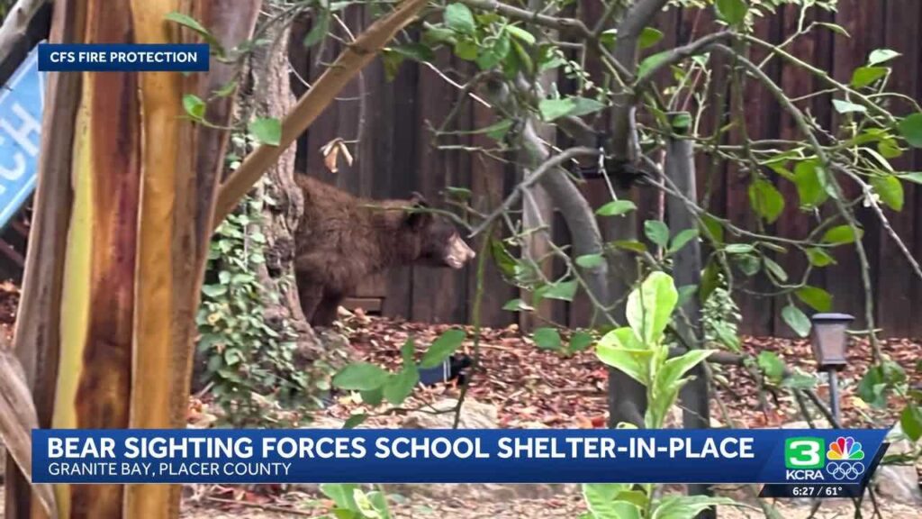 A bear and her two cubs were spotted wandering around in a Granite Bay neighborhood on Friday, prompting a lockdown at a school.